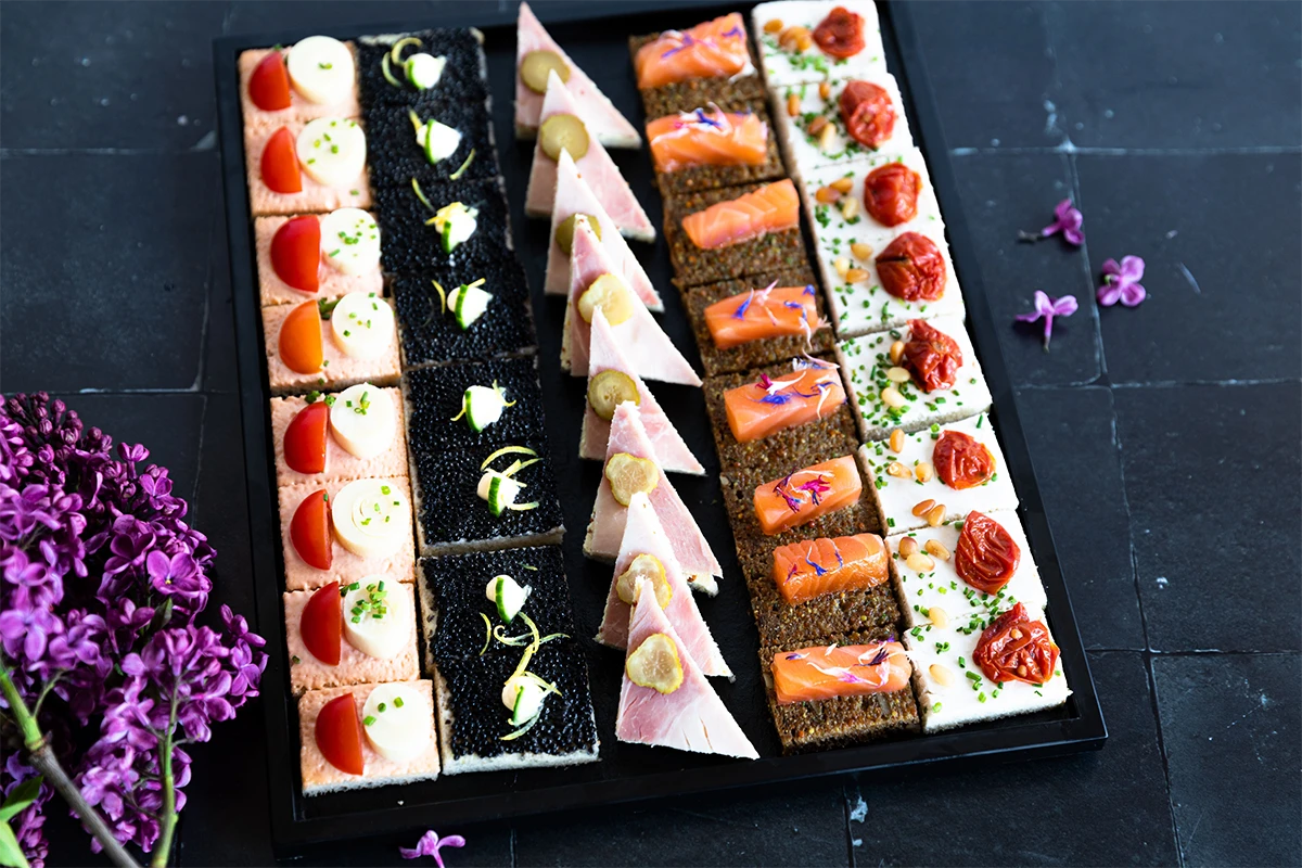 Canapés assortis classiquesJambon blanc et cornichon, pain nature |