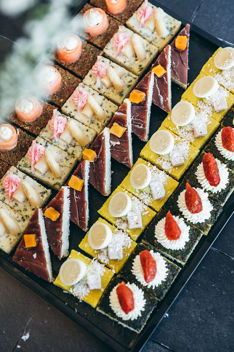 Canapés assortis prestigesMousse de chèvre et pesto, pain nature |