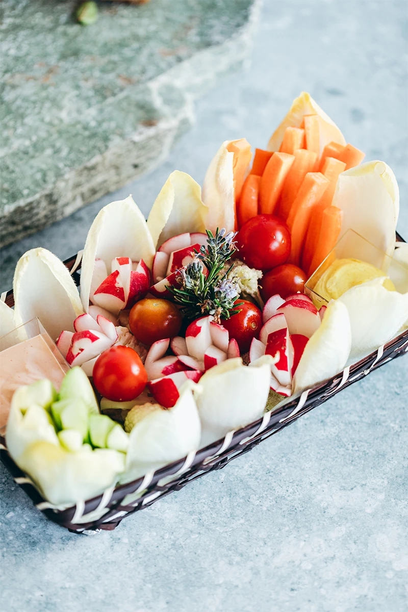 Panier de dips de légumesCarotte, concombre, tomate cerise, |