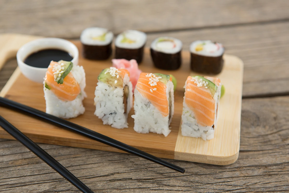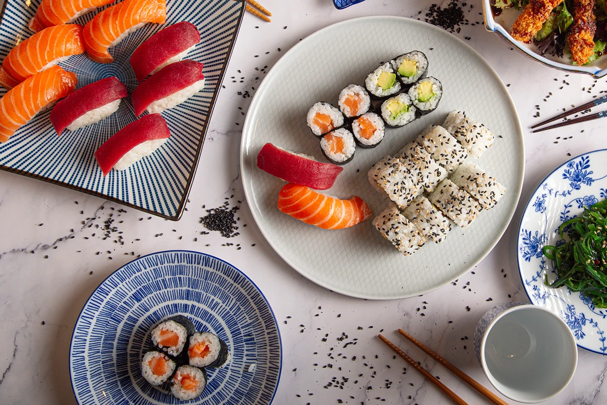 Plateau de sushi mixtes*6 nigiri saumon / 4 nigiri thon / 4 nigiri crevette |